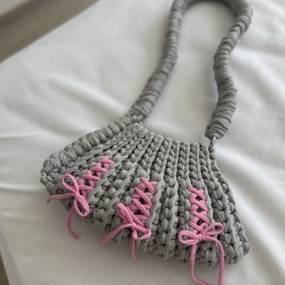کیف تریکو طوسی صورتی